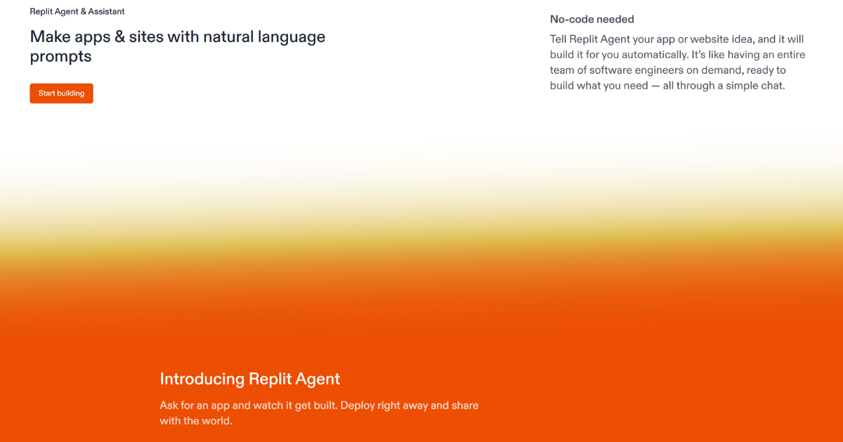 - Replit Agent: Builds apps and websites automatically from natural language prompts.